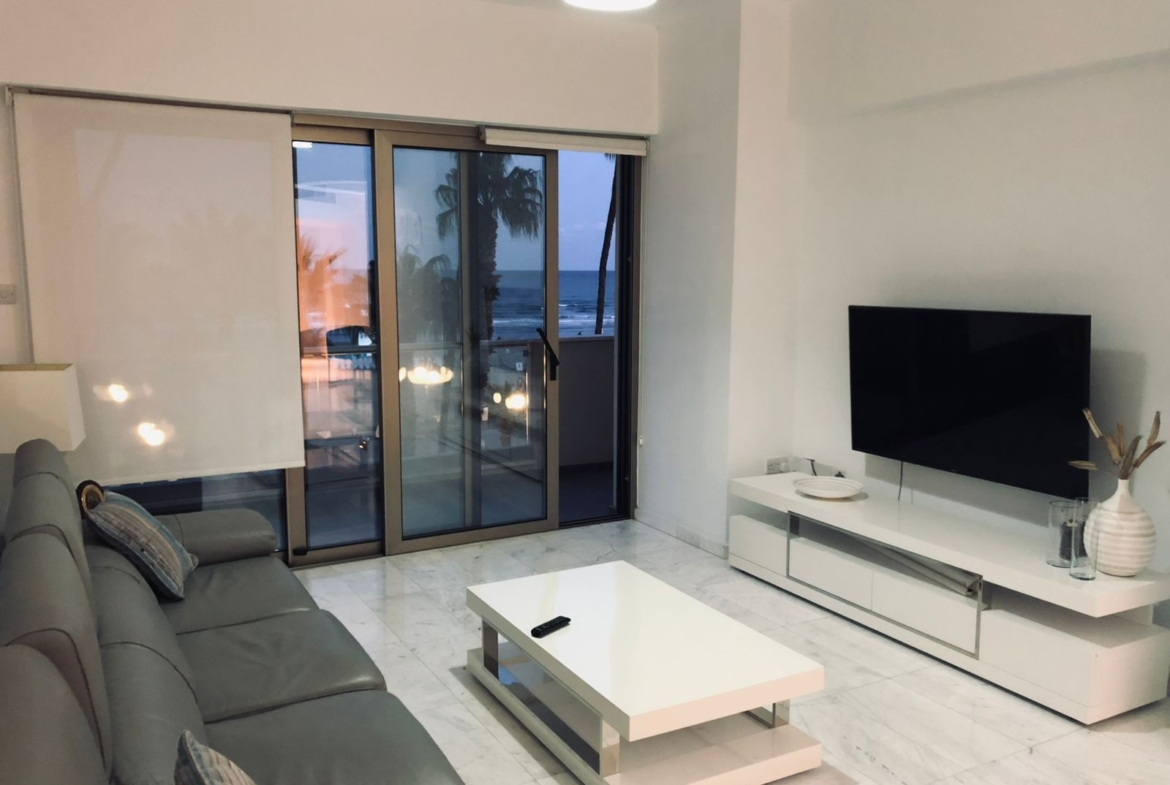 Experience unparalleled beachfront living in the heart of Larnaca with this exceptional 2-bedroom apartment located on the first line of the famous Finikoudes Promenade, within the prestigious Tessera Fanaria development. Situated on the first floor, this residence offers an enviable coastal lifestyle with every luxury amenity at your fingertips.