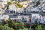 The two shops on the ground floor have 120sqm each. The two apartment on the 1st floor have internal area of 128sqm each. There is also a basement with a covered area of 130sqm. The shops and the flats are vacant.